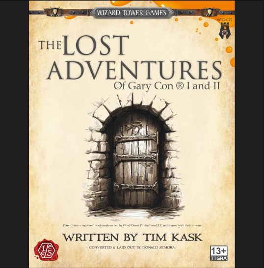 This is the Hard Cover version limited to 300 copies of the Lost Adventures of Garycon. In this special edition are two of the first tournament modules that Tim Kask wrote for GaryCon I and II. Each module is presented in it's original form, and also converted into both 1E and 5E versions, so everyone will get something out of this unique product.
